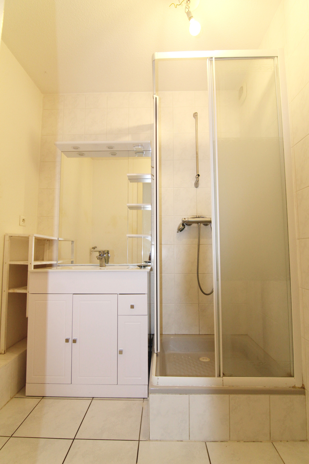 Il se compose de la façon suivante : Une entrée, une cuisine séparée équipée (four, plaque, hotte, lave-vaisselle, réfrigérateur, congélateur et de nombreux rangements), une pièce de vie lumineuse donnant accès à un balcon orienté ouest, une chambre de 11m2, une salle d'eau équipée (douche, meuble vasque et arrivée d'eau) ainsi qu'un WC séparé.