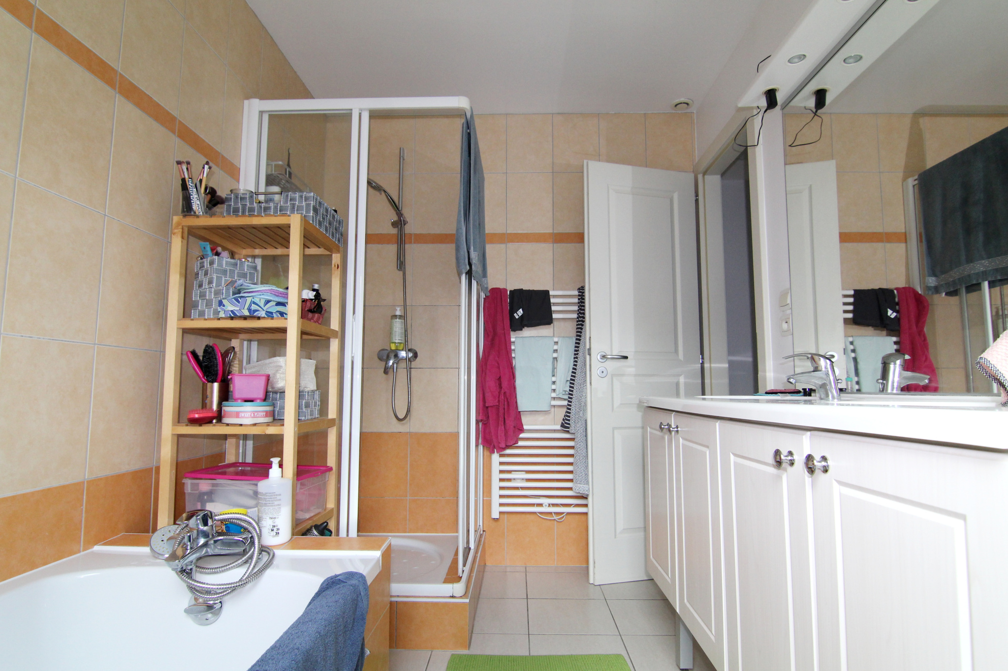 A l'étage : une salle de bain équipée (douche, baignoire, double vasque, WC), quatre belles chambres.